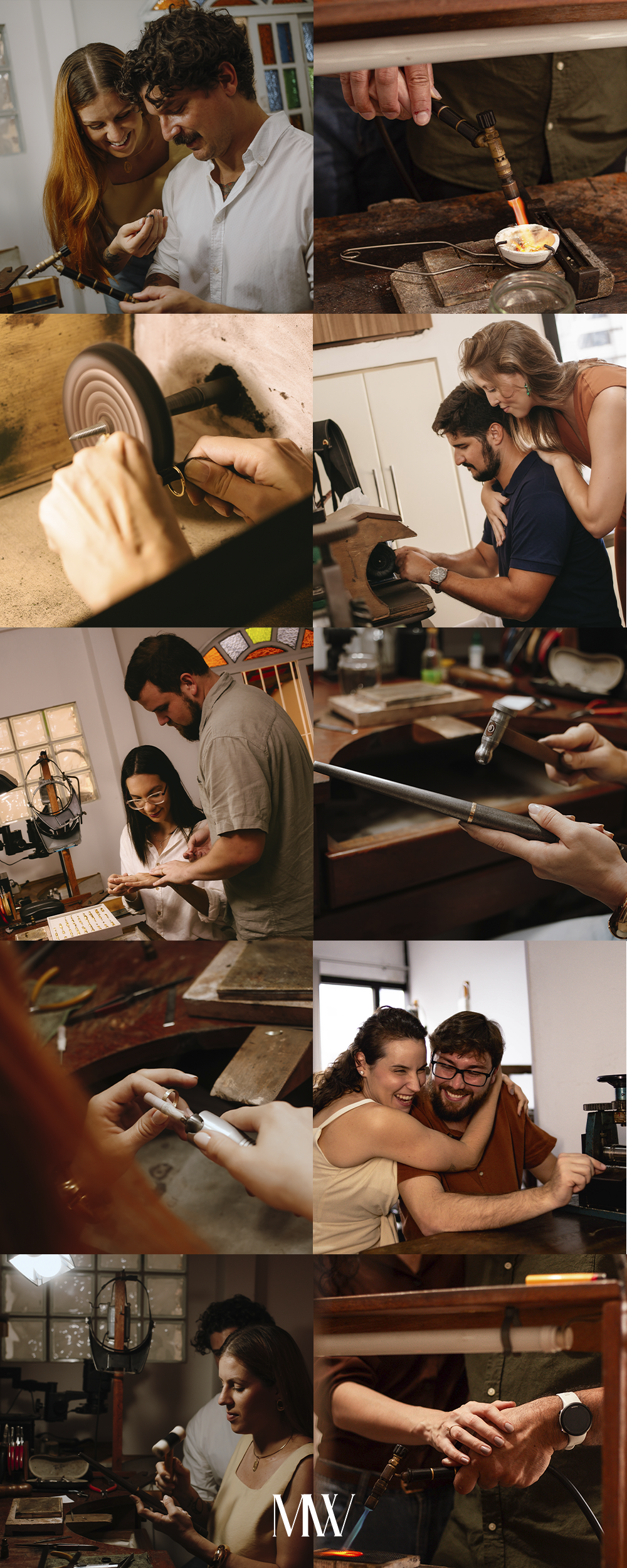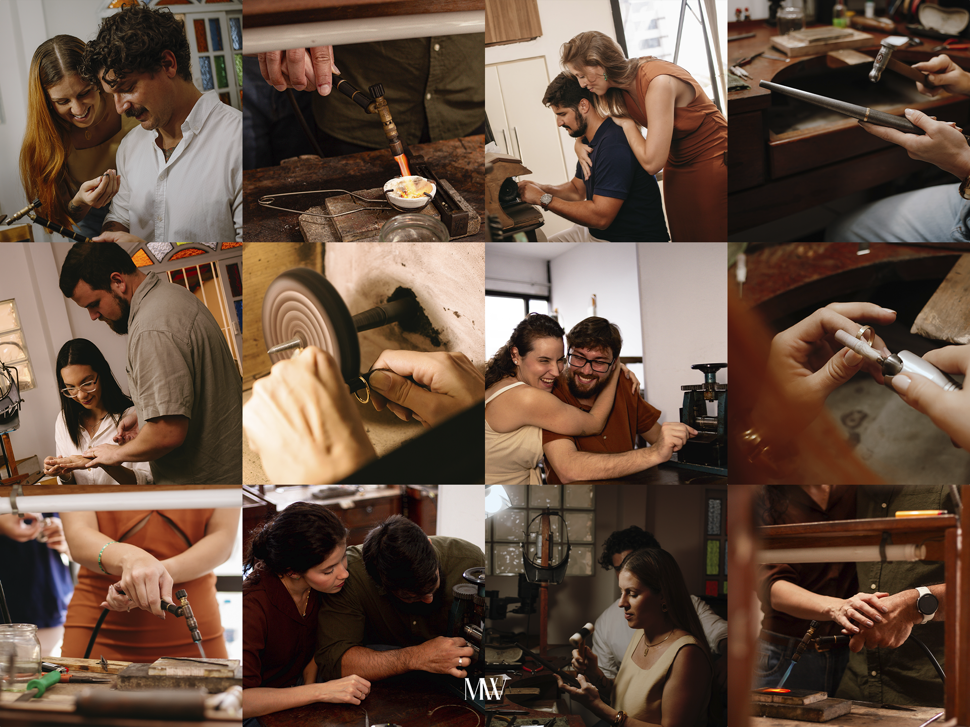 O espaço é calmo, com o horário inteiro exclusivo para você. Então começa: aquecer, moldar, soldar, lixar, polir.